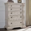 Made with hardwood solids, oak and ash swirl veneers, MDF substrates and cast resin components. Antiqued white finish. Hardware with antiqued bronze-tone finish. Case pieces having drawers with fully finished interiors, English dovetail construction and heavy-duty ball-bearing side glides (top drawers felt lined).