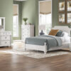 Made with hardwood solids, veneers and MDF substrates. Side rails feature laminated solid hardwood slat support rails (or LVL) with glued and screwed blocking for added strength. Rubbed antiqued white finish. Foundation/box spring required.