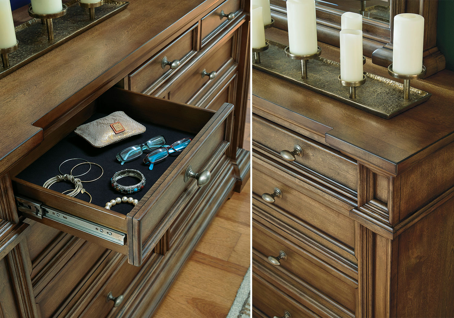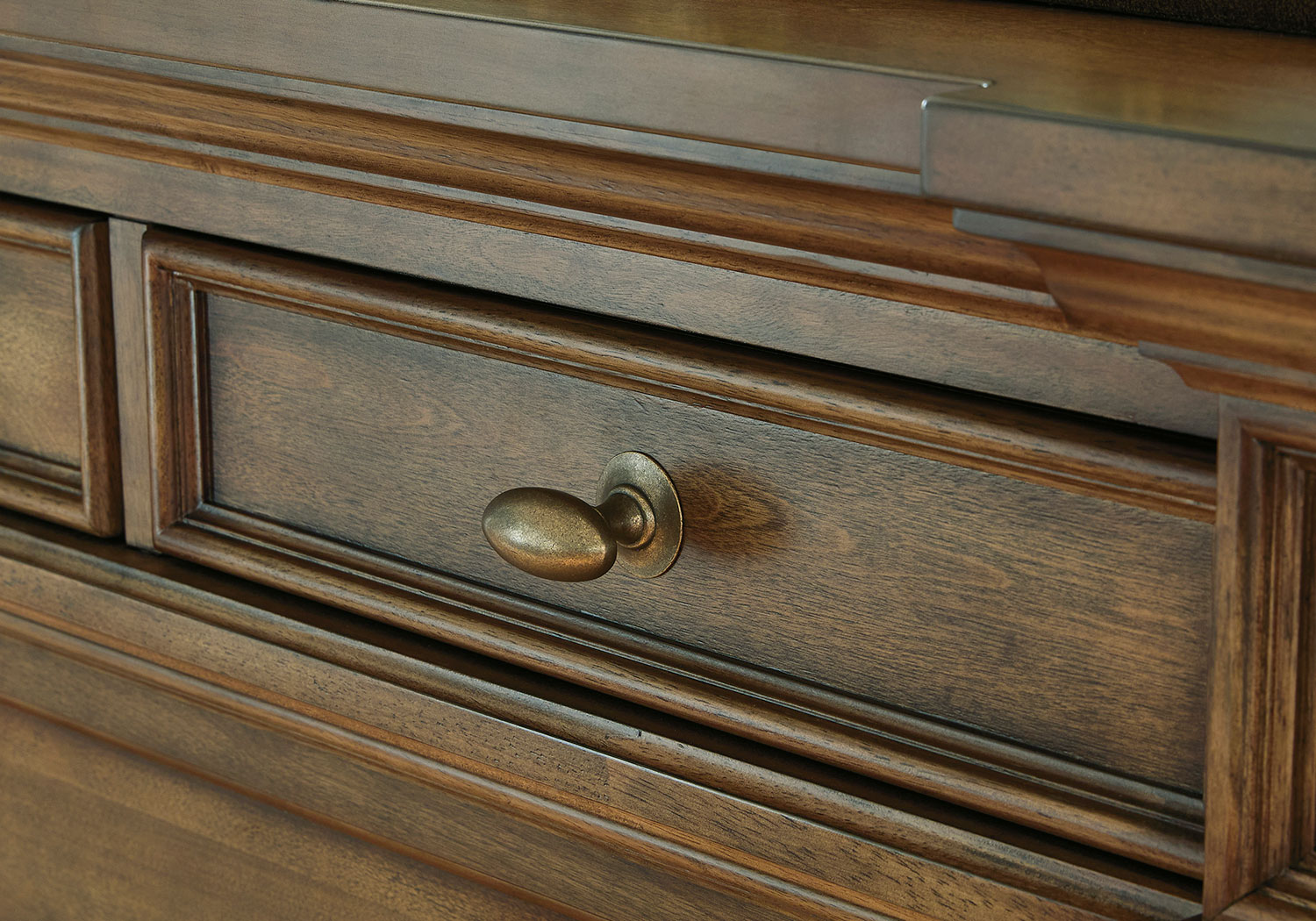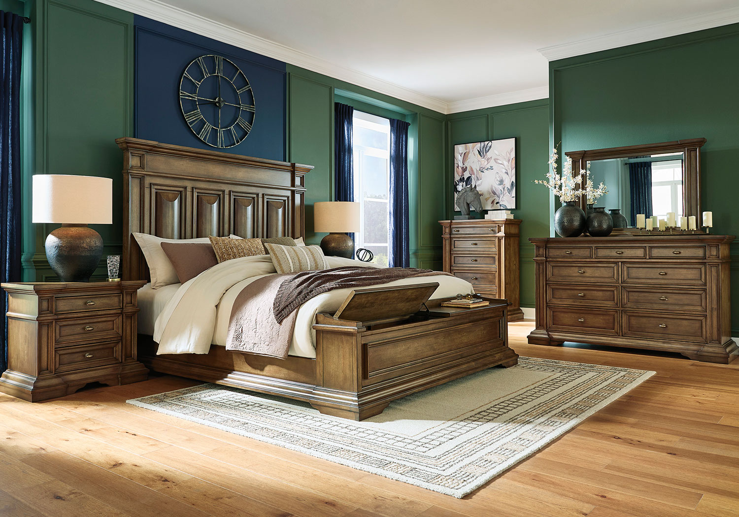 Time-honored style, made for today’s home. This panel storage Series pays homage to traditional aesthetics, with a richly detailed finish incorporating a sense of stately elegance. Included storage in the bench-style footboard adds subtle function. A substantially-scaled headboard and moulding details round out the piece in graceful fashion.