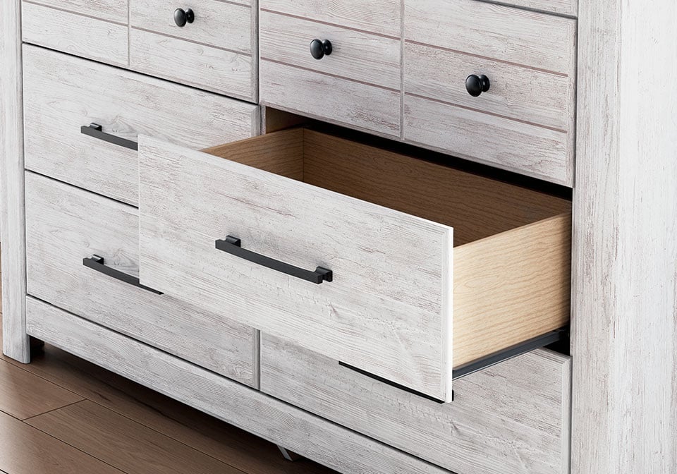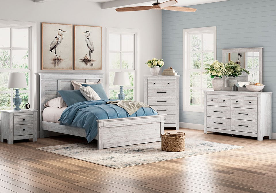 Looking to create a bedroom that feels airy and beautifully put together? This casually comfy panel Series is your perfect solution. Its clean lines, whitewash finish and replicated pine grain exude a charming cottage-inspired feel that brightens your restful retreat. Now there’s a fresh take on country living we can get behind.