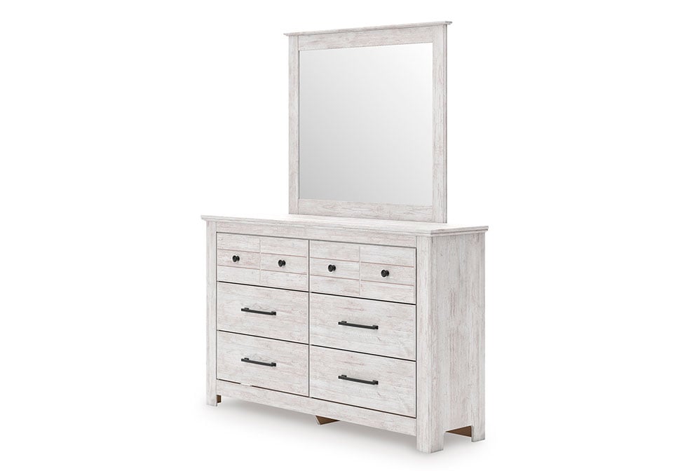 Made with engineered wood (MDF/particleboard/plywood) and decorative laminate for the right balance of affordability and durability. Whitewash replicated worn through paint over replicated wood grain with authentic touch. Decorative laminate replicates natural or man-made material surfaces with consistent color, pattern and texture. Foundation/box spring required.