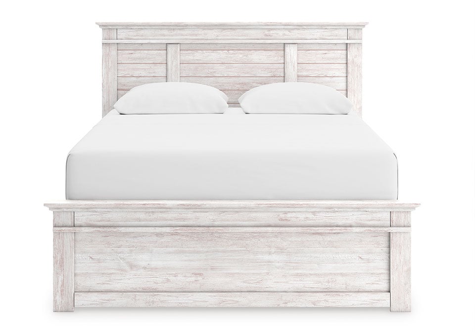 Makidern Whitewash King Panel Bed Set