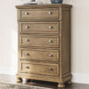 A relaxed take on casual traditional design, this nightstand strikes a comfy pose with a classic sensibility. Its timeless design and chestnut brown wood tone create a welcoming retreat tailored to your laid-back lifestyle. Metal knobs in an aged pewter color subtly dress up framed inset drawers that store nighttime essentials. A hidden pull-out tray behind the bottom drawer keeps your small valuables out of sight.