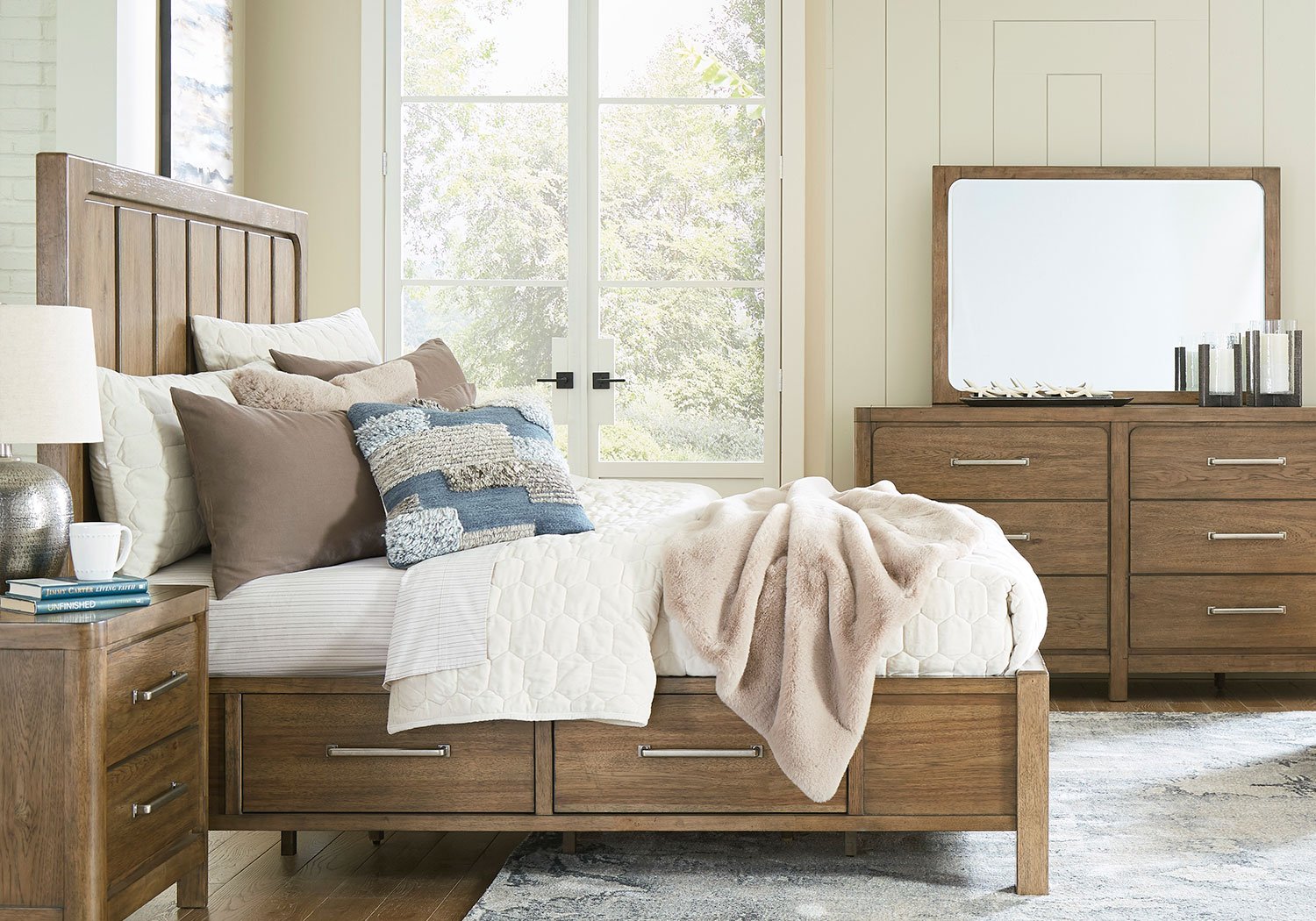This panel Series with storage sits comfortably at the intersection of modern lodge and farmhouse aesthetics. Your warm and welcoming disposition is reflected in its charming architectural elements and light brown glazed finish. Even with its poise, the Series remains practical. Storage drawers are effective space-savers, defining your bedroom with reliable function and style.