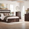 Style, simplicity and charm are hallmarks of this Series. Created with casual spaces in mind, it has the versatility to suit styles from craftsman to modern farmhouse. The rich brown finish aligns with your refined-meets-relaxed approach to everyday style. Short on storage space? Ultra-spacious under bed drawers keep extra clothes and linens neatly tucked away. And for a timeless touch, black metal fretwork on the headboard brings an inviting mixed-material feel to the overall look.
