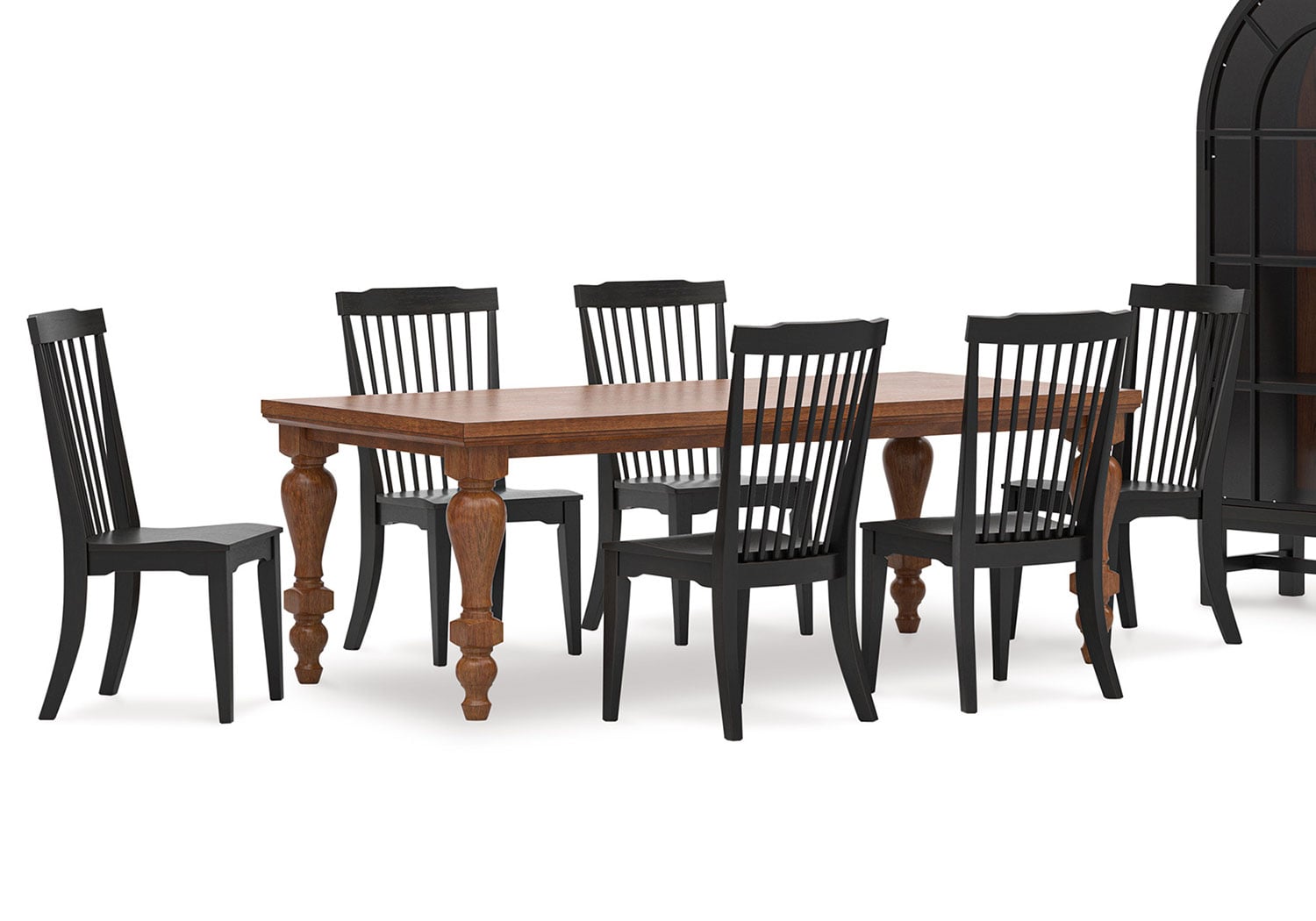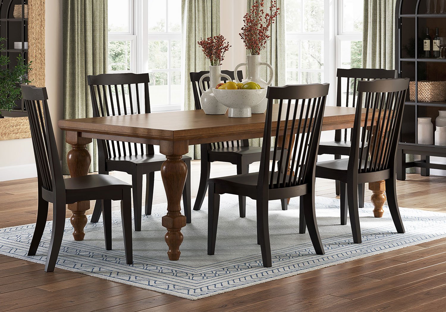Relaxed living and cozy comfort—that’s what traditional farmhouse design is all about. And what better way to embrace your love of rustic country style than with this dining Series. Celebrating the beauty of simplicity, its thick wood-tone top and chunky turned legs marry functionality with classic appeal for a fresh feel. Feel free to pair this table with assorted chairs in the collection for an eclectic look.
