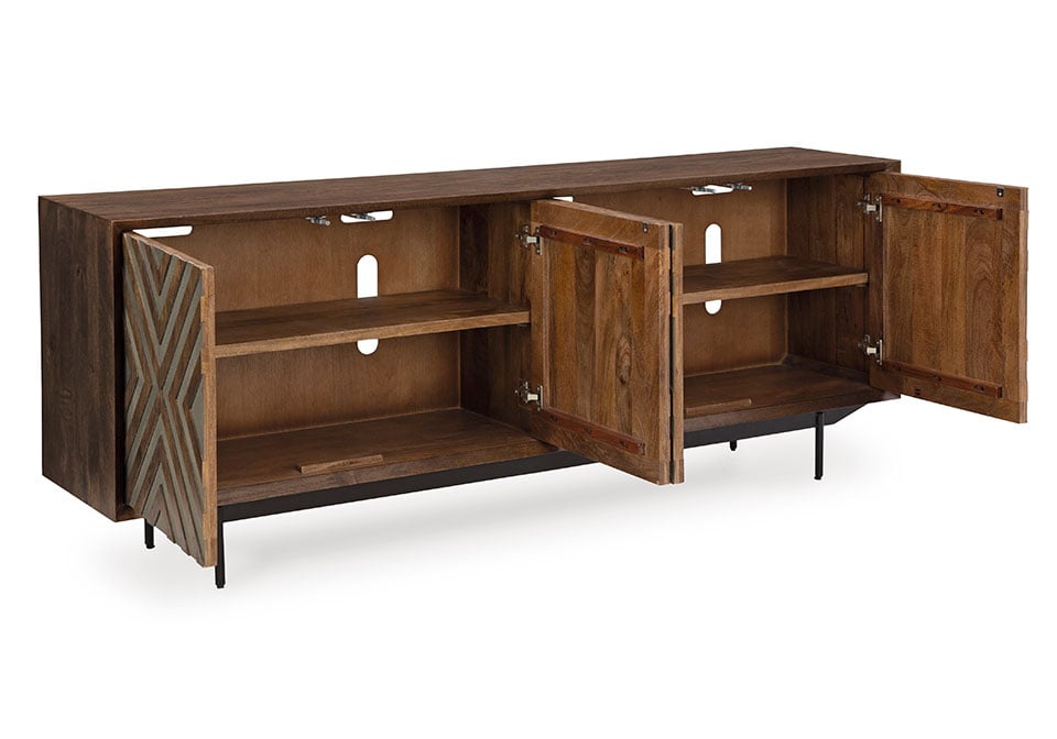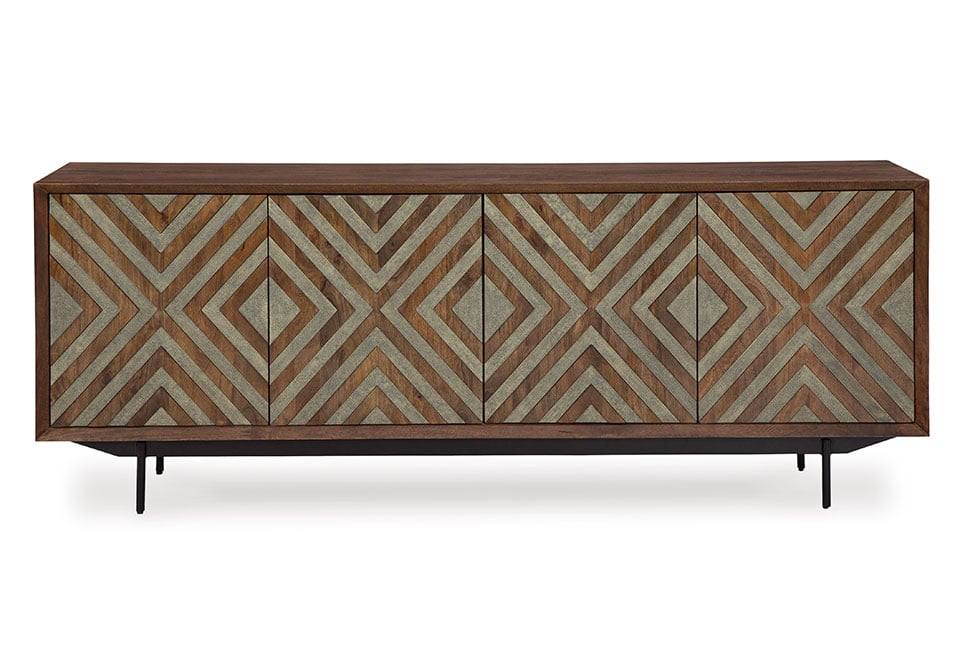 If you’re looking for a cool accent piece loaded with character, then you’ll want to carve out some space for this accent cabinet. Fabulous push magnet doors wow with their carved diamond design, while two interior shelves accommodate your storage needs. What a perfect way to mix an exotic element with your decor.