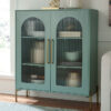 High style is on the rise with this wood accent cabinet. Its stunning doors, graced with a carved sunburst pattern and oversized wood pull, open to reveal two shelves. A distressed black finish adds contemporary flair. Whether this cabinet is accommodating storage needs or hiding clutter, it’s truly a showpiece.
