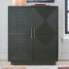 This accent cabinet puts a uniquely chic spin on a classic storage solution. It seamlessly blends clean lines with mid-century inspired curves, donning a light brown finish for that much more versatility. Exposed side shelves eagerly welcome your favorite decorative pieces, while additional shelves behind the glass-paneled doors offer ample storage.