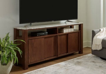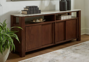 Versatile style teams up with must-have storage space. An elevated approach to the everyday, this accent cabinet is invitingly chic in a gray-brown finish. Soft-close hinges and adjustable shelving provide thoughtful functionality. Suiting spaces from casual to modern, this cabinet is equally chic in an entryway, living space or dining room.