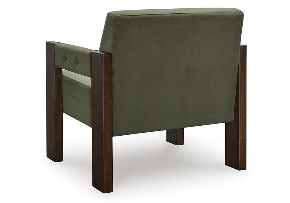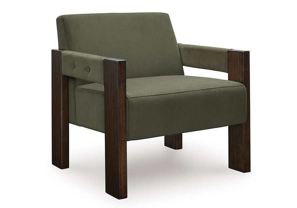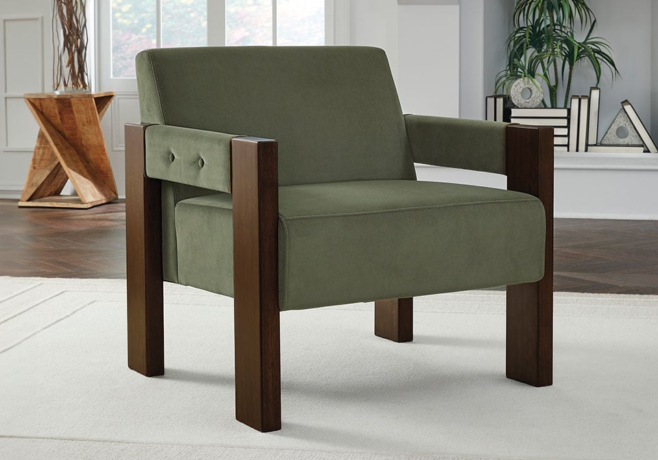 Get your modern sophistication on with this chic accent chair. Its rich olive green velvet upholstery is both luxurious and inviting, while an espresso-finished wood frame provides a warm, grounding element. The chair’s clean lines and minimalist design make it a versatile piece that complements a variety of decor styles.