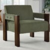 This accent chair is an ultra-contemporary addition to your seating area. Warm espresso-hued wood and neutral faux leather harmonize beautifully for a luxuriously welcoming vibe. Whether you’re cozying up with coffee or settling in to stream your favorite show, relaxing has never been so comfortably chic.