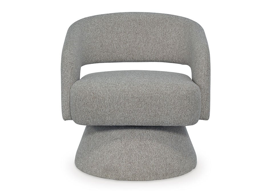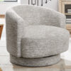 Indulge in the luxurious comfort and effortless style of this swivel accent chair. Its fine boucle upholstery and open barrel back create a chic and inviting look. And the 360-degree swivel base adds function to all that fabulous form.