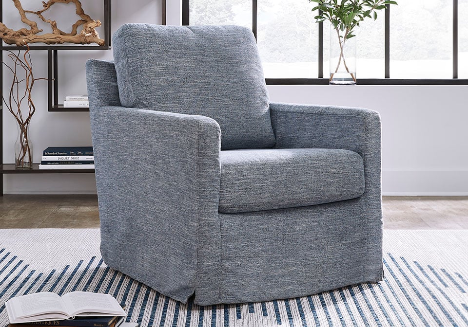 This swivel glider accent chair makes everyday lounging refreshingly low-maintenance. Handle spills with ease thanks to washable performance fabric. This chair delivers form and function all in one, keeping messes manageable so you don’t have to.