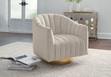 With its ultra-modern vibe and ultra-indulgent feel, this accent chair impresses with high-end looks priced to entice. Polished nickel-tone metal frame is a sleek, chic complement to the richly appointed black leather seating. Talk about the lap of luxury.
