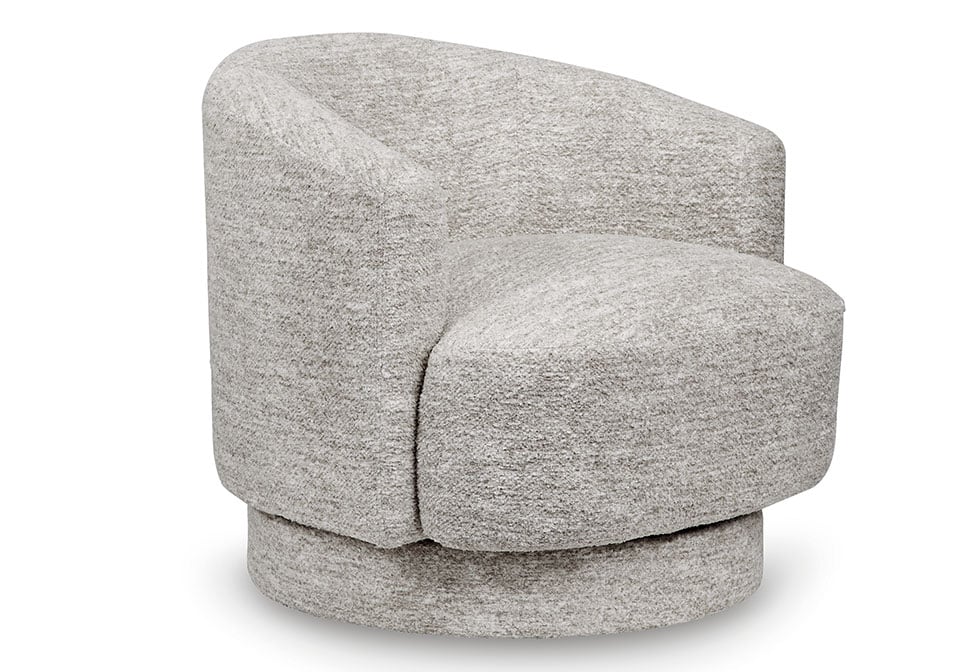 Relaxation meets refinement in this accent chair. With an ultra-soft fabric in a crisp, light neutral, it invites you to curl up in comfort. A 360-degree swivel provides added versatility. Drape a throw blanket over the back, or add an accent pillow for a pop of color—with this chair, the possibilities for cozy-contemporary style are endless.