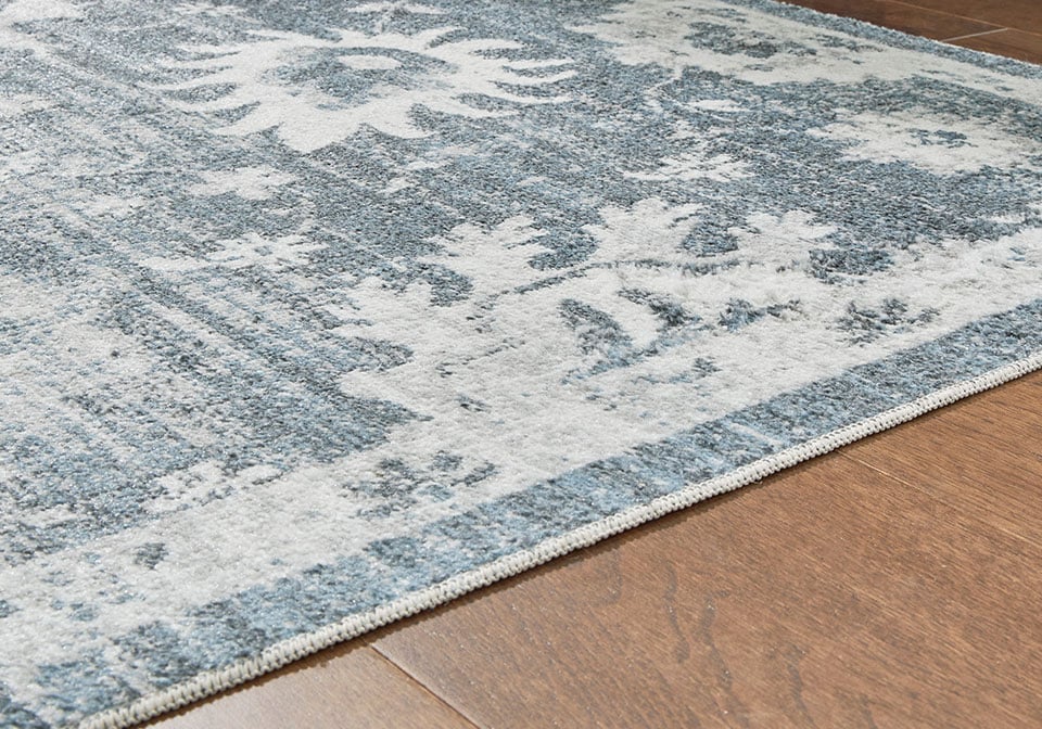 In spaces from coastal to boho, this area rug sets the scene for relaxed, carefree style. Its botanical design, infused with a soothing muted palette of blue, gray and ivory, exudes a calming vibe. And when life gets messy, this rug is machine washable for easy care.