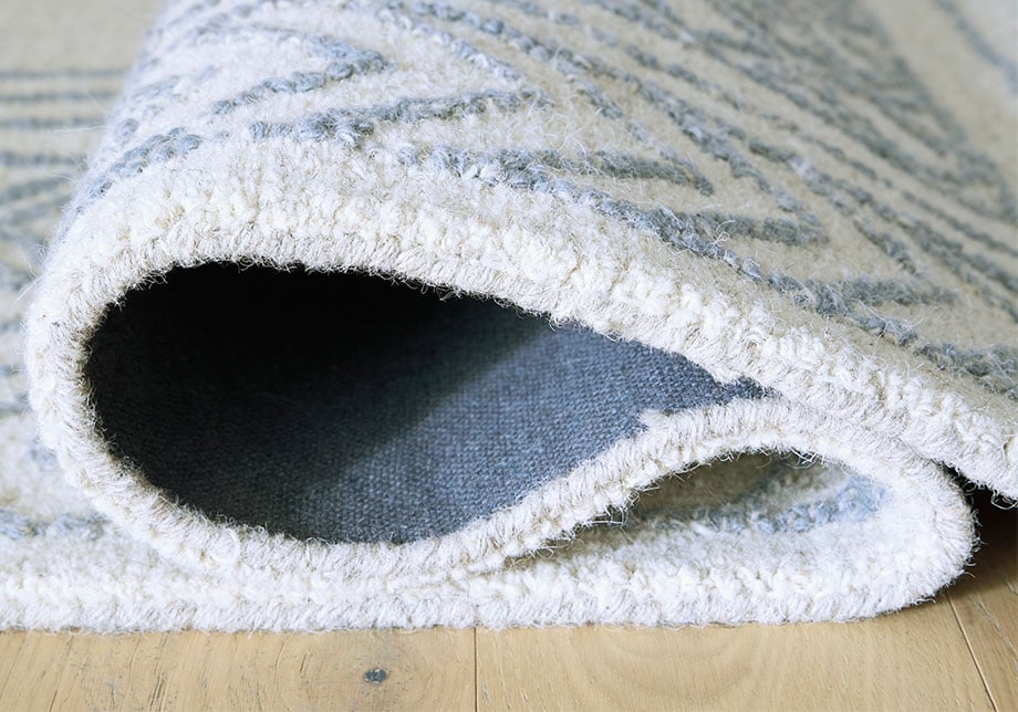Soft, serene style. This area rug combines the comfort of hand tufted wool with the soothing feel of coastal casual aesthetics. Its detailed border design, in a palette of blue, ivory and gray, welcomes with relaxed character.