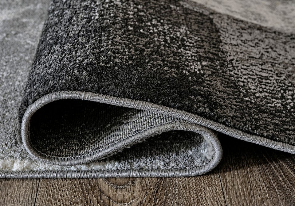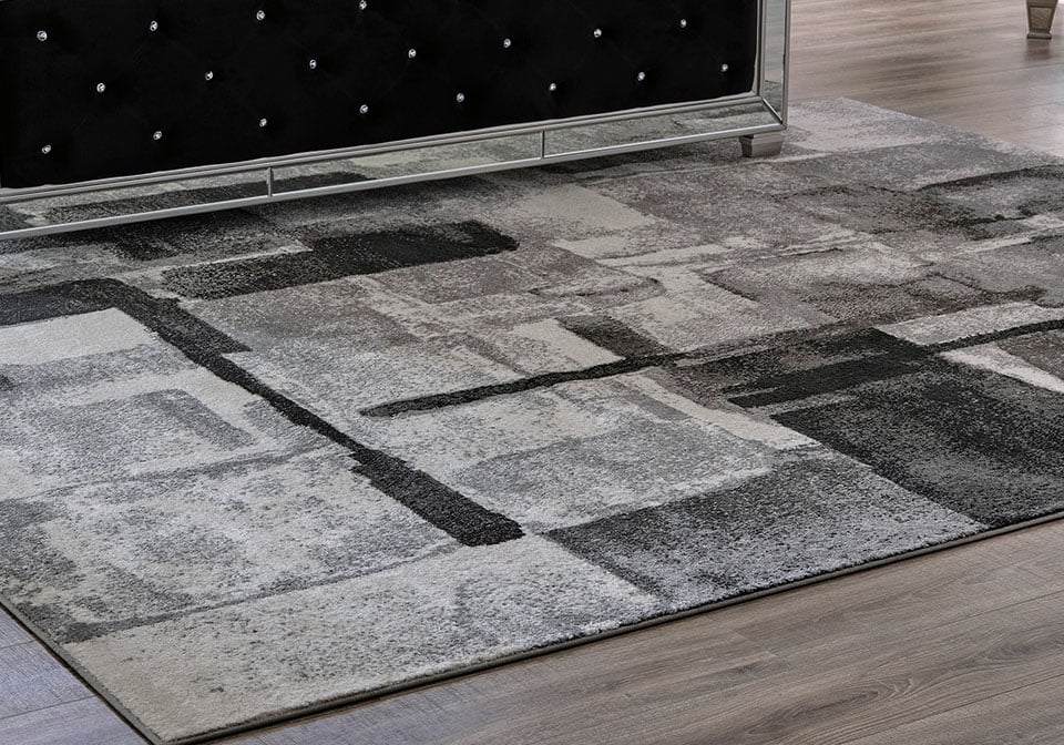 This area rug features a striking abstract design in black, gray and cream. Its ethereal look dresses up a room with subtle color, visual texture and a highly contemporary point of view.