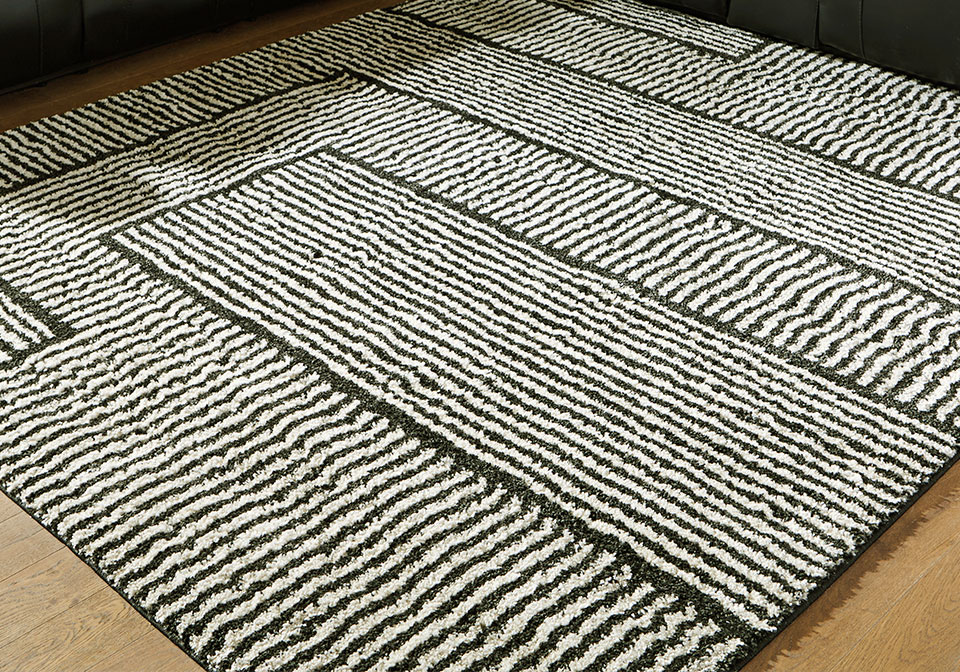 Prepare to be floored by this area rug. Crafted with a head-turning geometric design in on-trend black and ivory, this stunning piece infuses a modern sensibility in a variety of spaces. And its plush pile is loaded with feel-good texture for your tootsies.