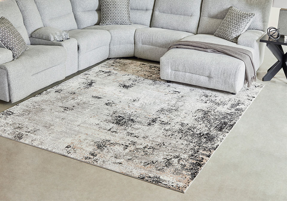 Wonderfully versatile and richly understated, this area rug brings plush comfort and a highly contemporary point of view to your decor. Incorporating so much visual texture, the abstract black, gray, white and tan design is a masterpiece of subtlety. It’s a frame-worthy piece of art, but we encourage you to walk all over it.