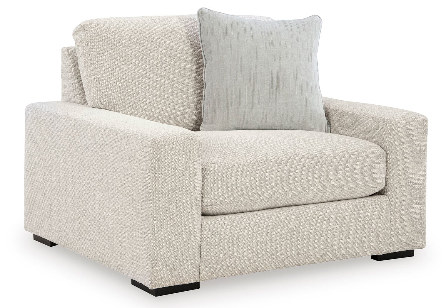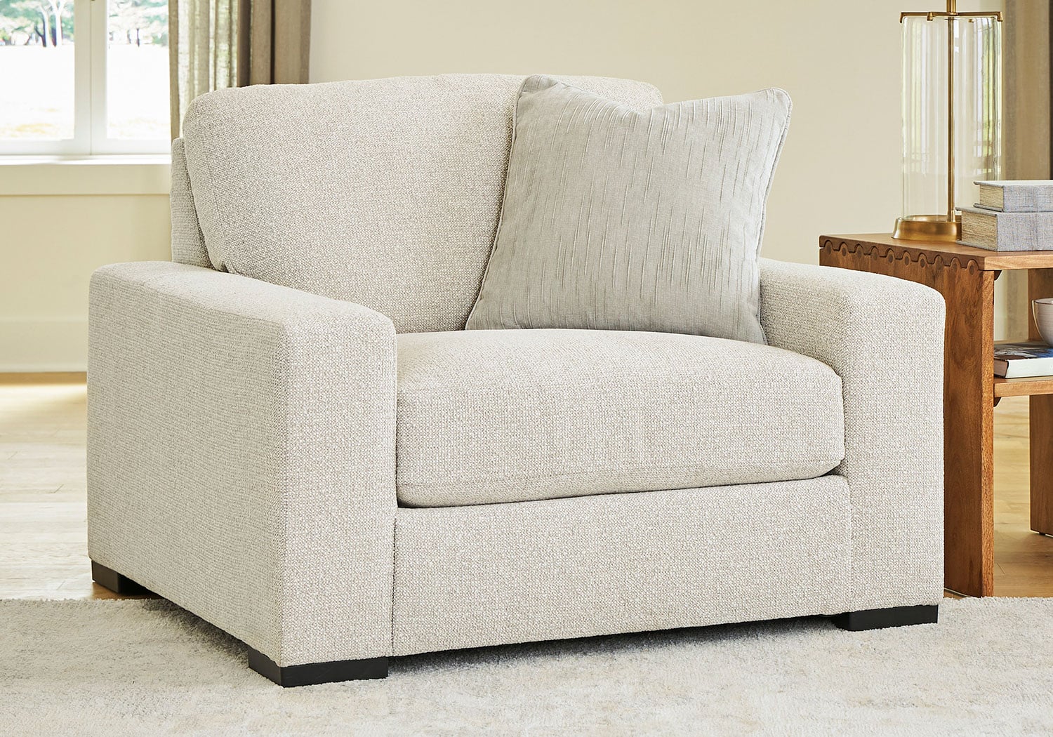 Reinforced frame provides added stability. Reversible seat and back cushions. High-density foam cushions wrapped in feather-fiber blend jacket. Pillows with feather-fiber blend. Polyester upholstery. Non-skid, low-profile accent legs with faux wood finish. Platform foundation system resists sagging 3x better than spring system after 20,000 testing cycles by providing more even support. Smooth platform foundation maintains tight, wrinkle-free look without dips or sags that can occur over time with sinuous spring foundations.