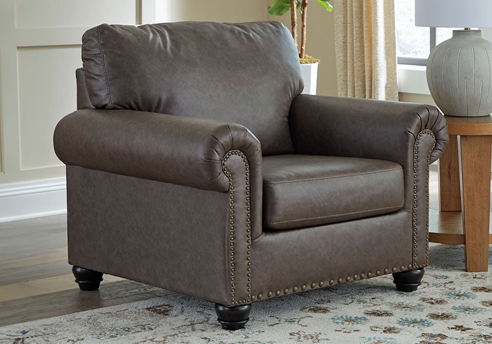 This Series marries classic character with a contemporary attitude. Love the timeless look of leather? Its take on deep brown faux leather is versatile enough to pair with styles from traditional to modern, at a price that won’t break the bank. Details like nailhead trim and roll arms polish off the piece with flair.