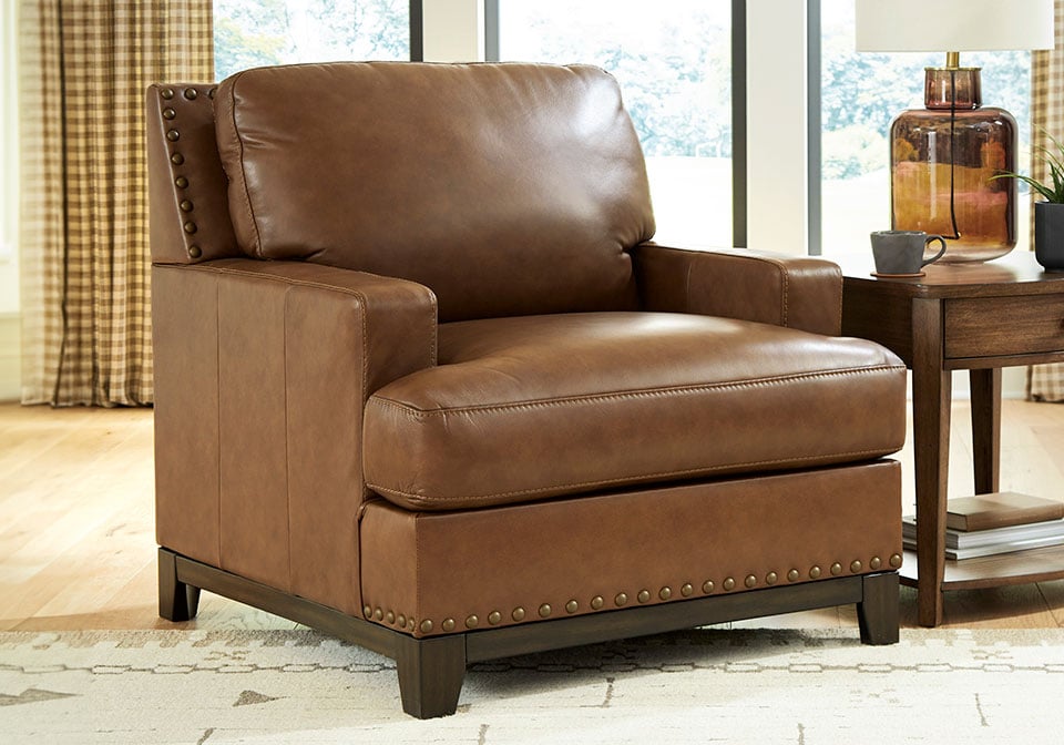 Effortlessly blending contemporary and classic elements for a truly timeless look, this Series offers a fresh take on transitional style. A robust silhouette is coupled with skillfully matched leather and faux leather upholstery, while nailhead trim adds a touch of subtle sophistication. Pleasingly plump cushions with jumbo stitching provide exceptional comfort. We’re all in—how about you?