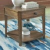 Serving up transitional style at its best, this striking coffee table looks equally at home in traditional and modern settings. Its classic brown finish merges effortlessly with a softly rounded top and tapered legs for a timeless, contemporary vibe. A lower shelf beautifully accommodates baskets, magazines, plants and more, while two end drawers keep entertainment essentials close by.