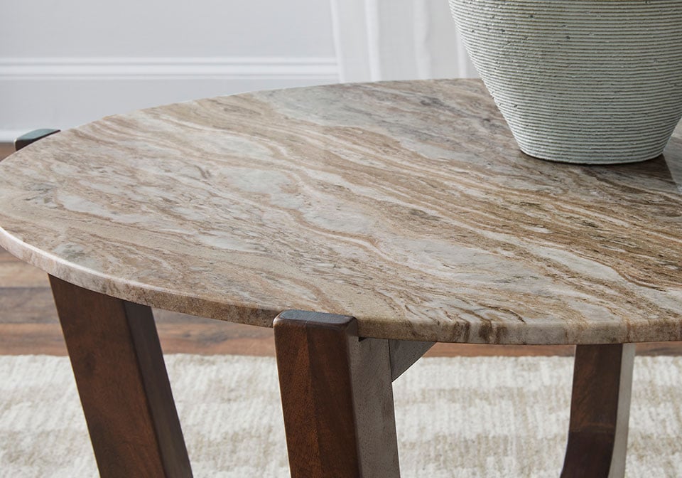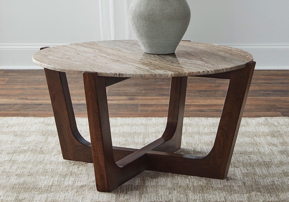Not only does the stunning Tanidore coffee table enhance the aesthetic of your home, but it also provides practicality and functionality. Crafted with a mango wood frame and natural marble top, its solid construction and durable materials ensure years of reliable use. It’s the perfect blend of contemporary style and timeless elegance.