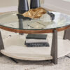 A modern twist on mixed-media design, this end table is totally brilliant. Solid wood legs and a faux travertine shelf merge splendidly with the metal frame for a fresh, contemporary aesthetic. Talk about the perfect spot for cocktails and morning coffee to land.