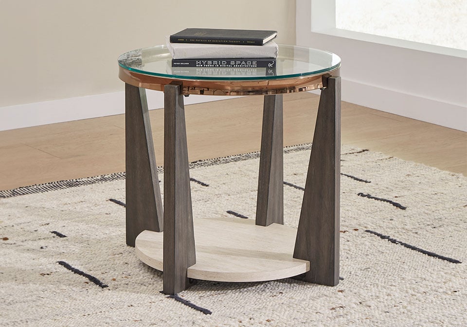 A modern twist on mixed-media design, this end table is totally brilliant. Solid wood legs and a faux travertine shelf merge splendidly with the metal frame for a fresh, contemporary aesthetic. Talk about the perfect spot for cocktails and morning coffee to land.