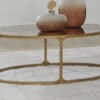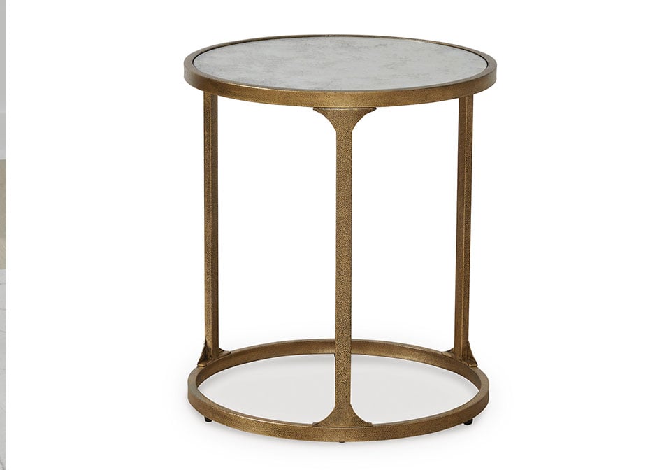 This end table blends a traditional feel with contemporary design cues. Antiqued gold texturing on the frame has the look of timeworn, hand-forged metal. A tempered glass top with a faux marble finish provides a refined contrast. Chic when hosting decor, a lamp or holding entertainment essentials, this table rounds out your living room with transitional flair.