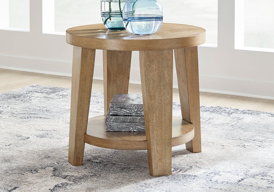 Add exceptional casual appeal to your entertaining and gathering space with this end table. A light wood-tone finish enhances its natural beauty, while thick, chunky geometry highlights the casually cool design. This table’s relaxed feeling is right at home next to a couch, loveseat or your favorite comfy chair.