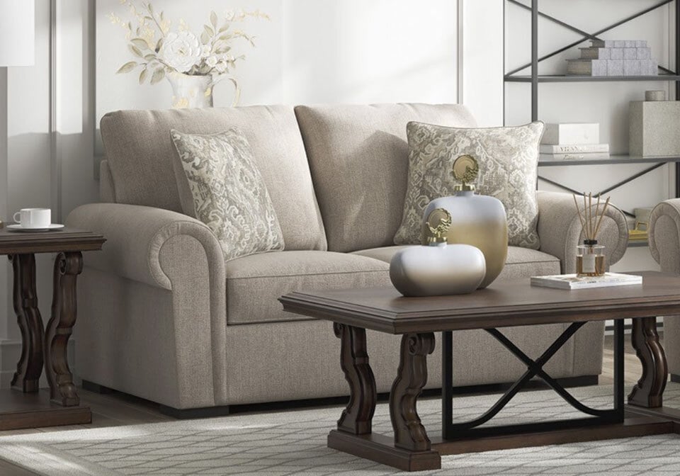 Looking for that perfect blend of timeless and cozy? This loveseat delivers both, with classic roll arms and soft chenille upholstery that feels like a warm hug. There’s plenty of space to curl up with a good book or stretch out for an afternoon nap. This casually cool couch is perfect for anyone who loves traditional style but doesn’t want to sacrifice modern-day comfort.