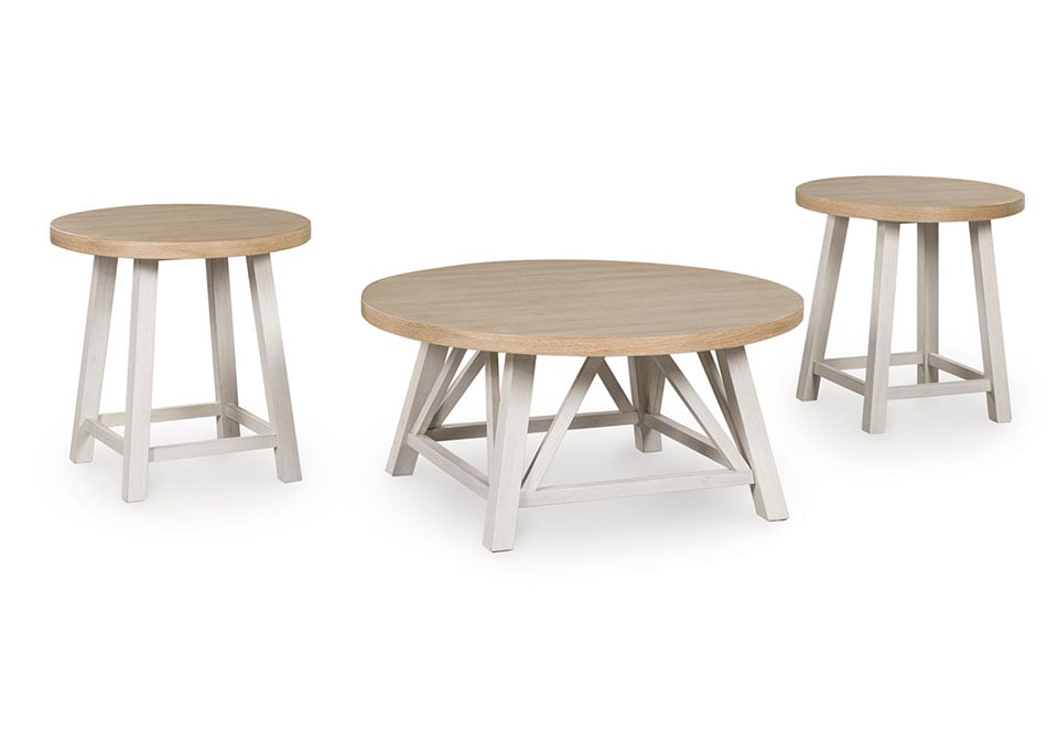 Invite easy-breezy style in with this occasional table set. Complete with a coffee table and matching end tables, the stylish two-tone set fits right into modern farmhouse and coastal settings. Simply stage and arrange around your existing furniture—their rounded design pairs well with smaller sofas and sectionals, so you can make the most of your space.