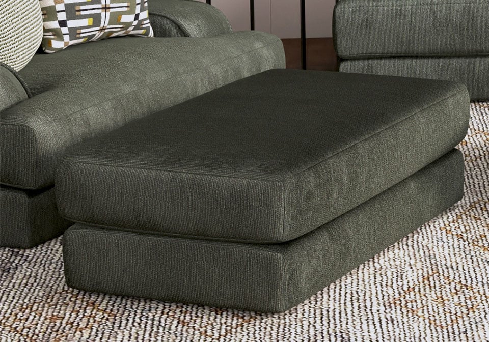 This spacious ottoman offers plush comfort with its thick, supportive cushioning and soft chenille fabric. A Perfect footrest, it complements the series with matching style, durability, and inviting, oversized design.