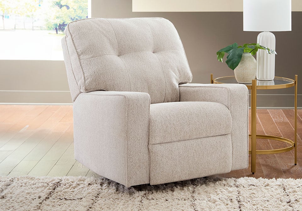 Sincere in its styling, this recliner marries classic function with modern design elements for truly transitional appeal. Its track arms lend a contemporary vibe, while easy pull tab reclining ups the comfort level. And with the recliner’s goes-with-anything neutral upholstery, styling is made simple. All that’s left for you to do is sit back and relax.