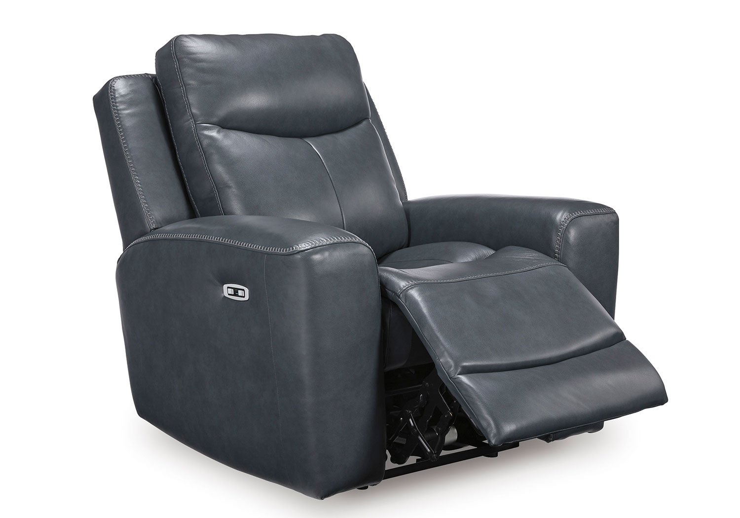 Prepare to be moved. This power recliner combines sleek modern design with all the soothing features you’ve been dreaming of. Wrapped in blue-hued leather and faux leather for affordable luxury, this highly contemporary piece with cozy scoop seating suits your relaxed vibe. Infinite reclining and headrest positions are yours at the touch of a button. It’s the perfect choice for anyone who wants their comfort with a side of style.