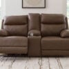 - 100% top grain leather covers inside areas such as the back, seat and arm cushions; skillfully matched faux leather covers the remaining areas