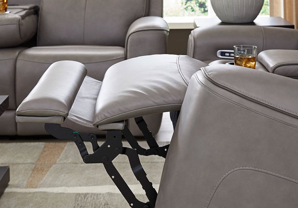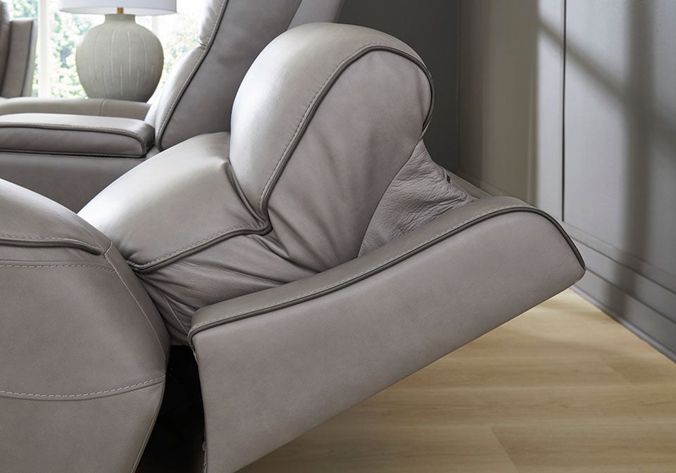 Relax like never before. This power reclining Series is crafted with luxury in mind, complete with supple top-grain leather in the seating area. With chic tailoring and stylish welting, it creates a sophisticated presence and makes a lasting impression. When you’re ready to be pampered, indulge in the adjustable headrests, heated seats and air massage, all at the touch of a button. And did we mention the loveseat’s console with storage and dual cup holders? Chill time just got a whole lot sweeter.