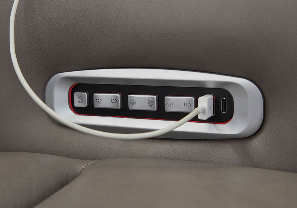 One-touch power control with adjustable positions, Easy View™ adjustable headrest and zero-draw USB port. Zero-draw technology only consumes power when the USB receptacle is in use. Zero-gravity mechanism allows optimum reclining comfort with infinite reclining positions at the touch of a button. Corner-blocked frame with metal reinforced seat; attached cushions; high-quality foam cushions wrapped in poly fiber. 100% top grain leather covers inside areas such as the back, seat and arm cushions; skillfully matched faux leather covers the remaining areas. Due to its natural origin, real leather can show individual characteristics such as healed scars, growth marks, grain variation and shade variation. Natural variations make each hide unique and do not detract from the wearing qualities of leather. Heat and massage function covers 5 zones: head, neck, upper and lower shoulders and lumbar. Air massage system with automatic 30-minute shutoff feature. Heat in the seat element with automatic 30-minute shutoff feature. Center console with 2 cup holders and hidden storage.