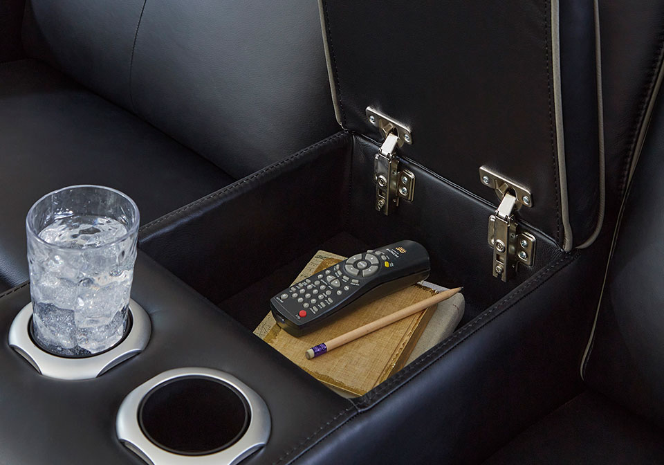 Relax like never before. This power reclining Series is crafted with luxury in mind, complete with supple top-grain leather in the seating area. With chic tailoring and stylish welting, it creates a sophisticated presence and makes a lasting impression. When you’re ready to be pampered, indulge in the adjustable headrests, heated seats and air massage, all at the touch of a button. And did we mention the loveseat’s console with storage and dual cup holders? Chill time just got a whole lot sweeter.