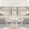Upholstered in smooth, in Genuine leather. Power recline & power headrests (P2 functionality). Deep, supportive seating with plush armrests and back cushions. Built-in center console with cup holders and hidden storage. Sleek modern design with a neutral tone that suits any décor. Ideal for media rooms, living rooms, and open-concept spaces. Due to its natural origin, real leather can show individual characteristics such as healed scars, growth marks, grain variation and shade variation. Natural variations make each hide unique and do not detract from the wearing qualities of leather.