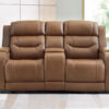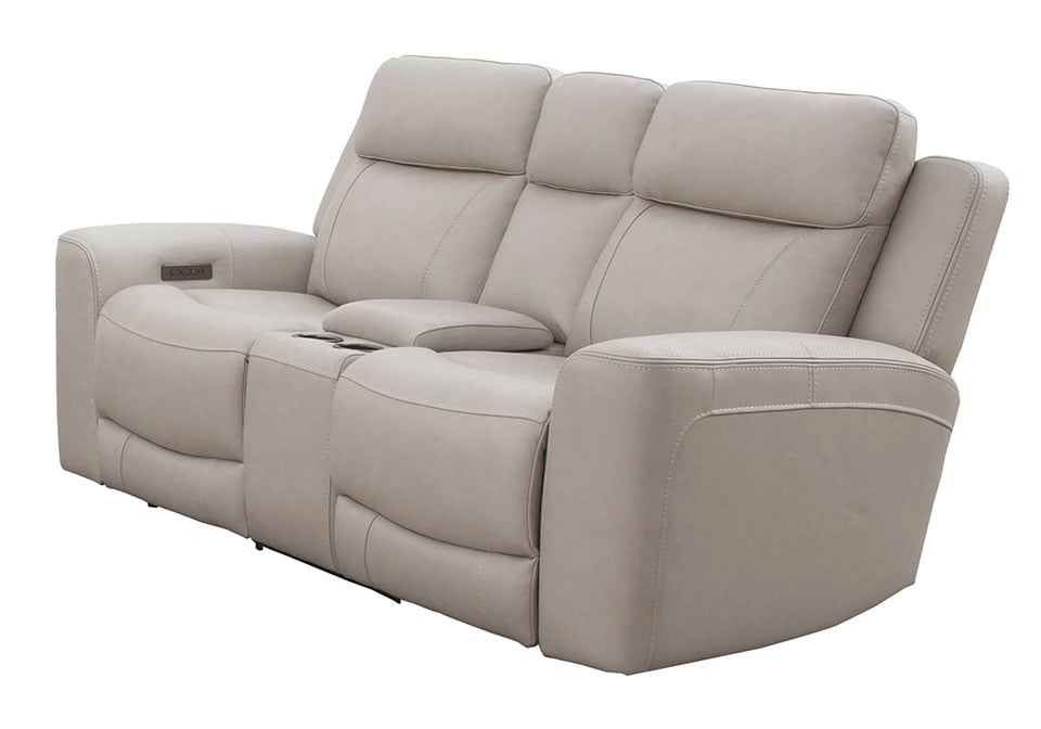 Upholstered in smooth, in Genuine leather. Power recline & power headrests (P2 functionality). Deep, supportive seating with plush armrests and back cushions. Built-in center console with cup holders and hidden storage. Sleek modern design with a neutral tone that suits any décor. Ideal for media rooms, living rooms, and open-concept spaces. Due to its natural origin, real leather can show individual characteristics such as healed scars, growth marks, grain variation and shade variation. Natural variations make each hide unique and do not detract from the wearing qualities of leather.
