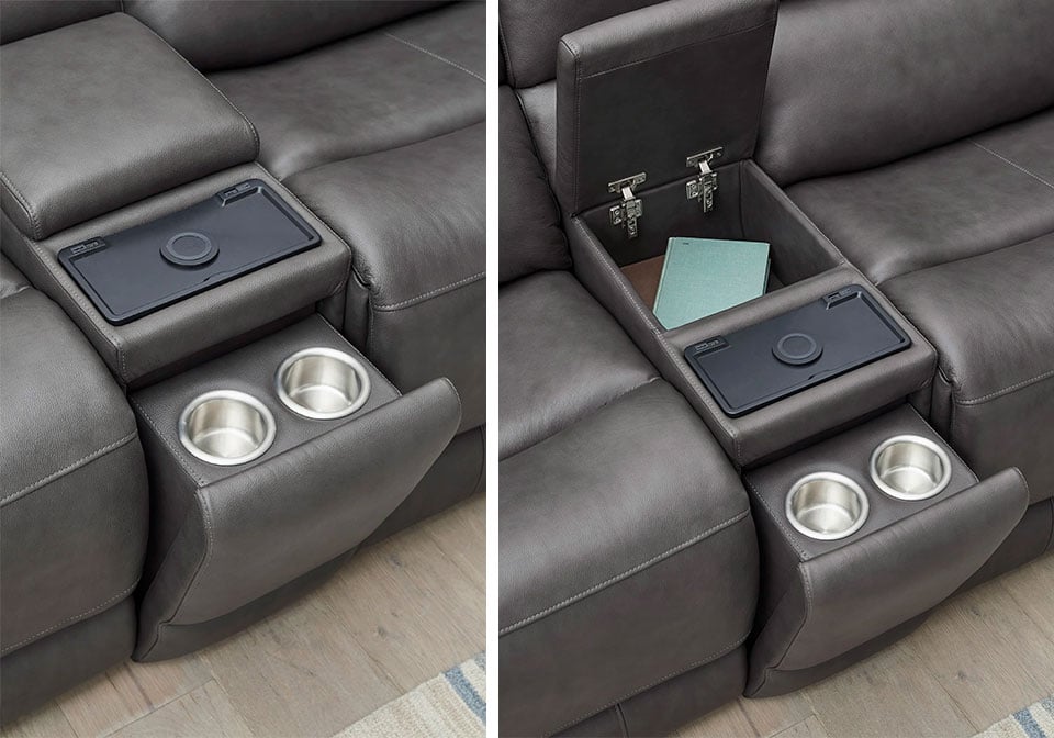 Experience elevated comfort with this power reclining sectional featuring advanced P3 motion, allowing independent headrest, lumbar, and recline adjustments for personalized support. Zero Gravity reclining, hidden cup holders, and a wireless charging console deliver modern luxury and total relaxation.
