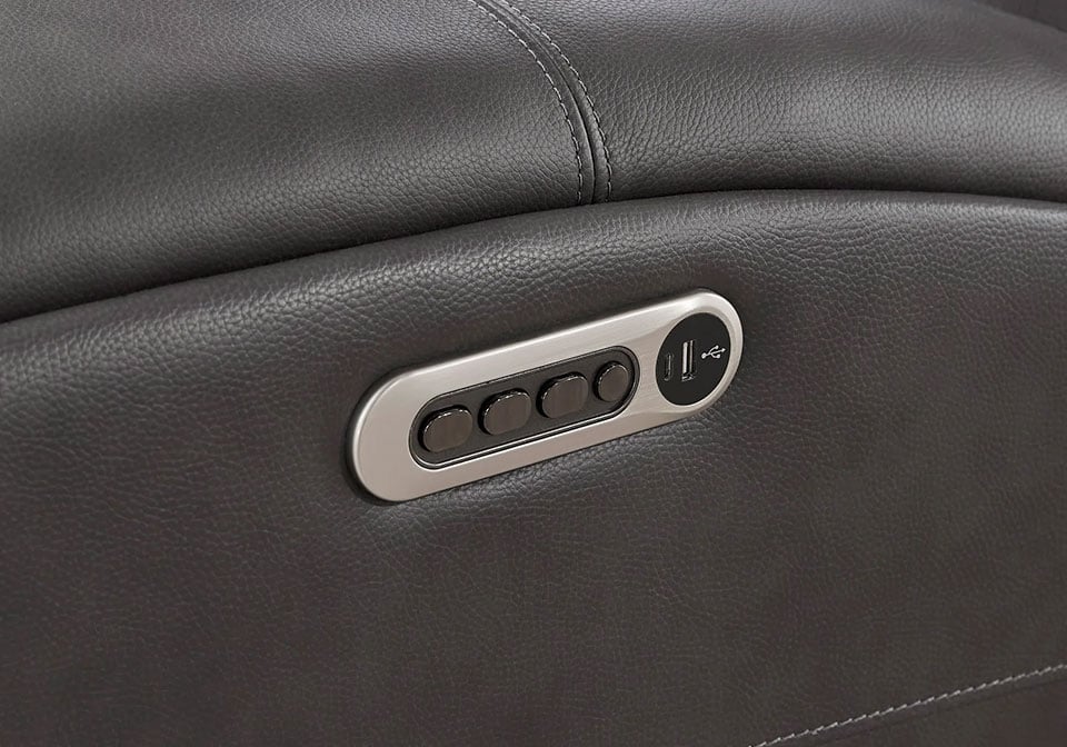 Upholstered in smooth, in Genuine leather. Power Zero Gravity reclining, advanced P3 motion with independent headrest and lumbar control, hidden cup holders, wireless charging console, plush cushioning, and sleek contemporary styling designed for comfort, support, and everyday convenience. Due to its natural origin, real leather can show individual characteristics such as healed scars, growth marks, grain variation and shade variation. Natural variations make each hide unique and do not detract from the wearing qualities of leather.