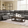Are you ready to experience next-level relaxation? This power reclining sectional combines supple leather and faux leather upholstery with smart features that make unwinding effortless. With just one touch, you can adjust your position while the power headrest keeps you perfectly aligned for reading or binge-watching your favorite shows. The Zero³ reclining requires minimal space between wall and chair back while delivering fully supported, fully reclined comfort at the touch of a button. Thoughtfully designed with sculptural padded arms and built-in USB charging, this spacious piece will be your new favorite spot to recharge—both yourself and your devices.