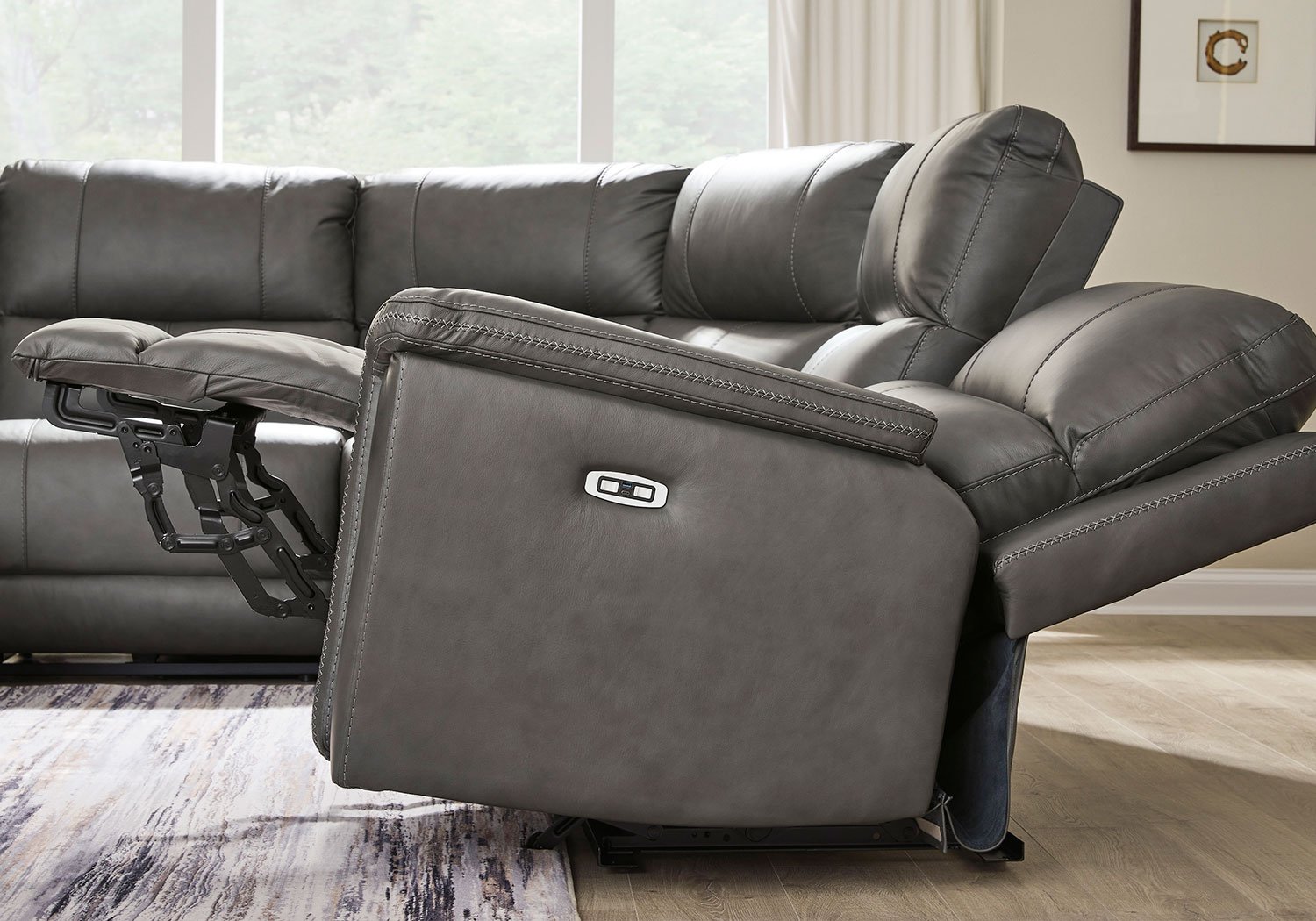 Are you ready to experience next-level relaxation? This power reclining sectional combines supple leather and faux leather upholstery with smart features that make unwinding effortless. With just one touch, you can adjust your position while the power headrest keeps you perfectly aligned for reading or binge-watching your favorite shows. The Zero³ reclining requires minimal space between wall and chair back while delivering fully supported, fully reclined comfort at the touch of a button. Thoughtfully designed with sculptural padded arms and built-in USB charging, this spacious piece will be your new favorite spot to recharge—both yourself and your devices.