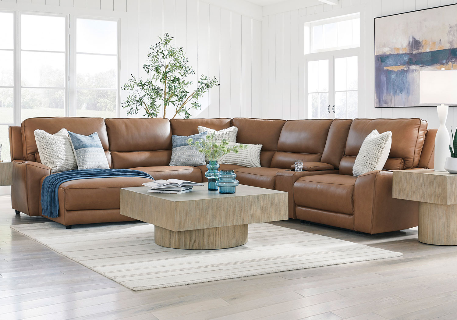 DeepWakes Caramel 6pc. LAF Chaise Power Reclining Sectional